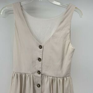 Cream Colored Cage Front Sleeveless V Neck Mini Dress Womens Size Small Full Button Front