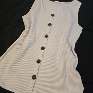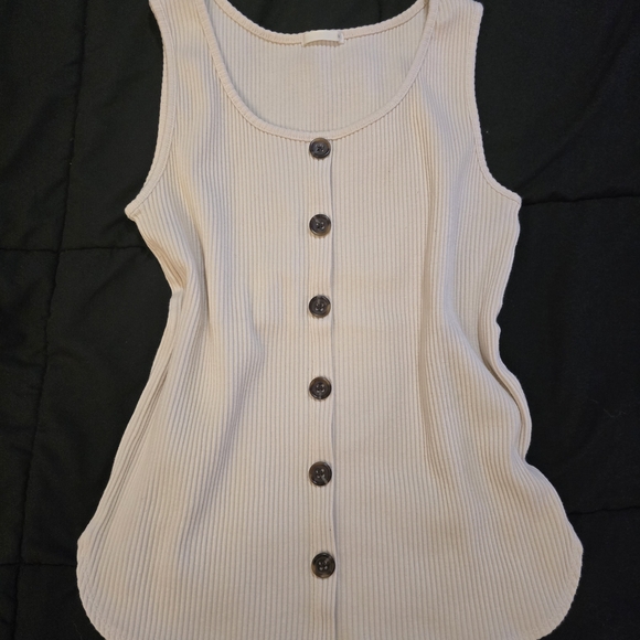 Elevate your wardrobe with this stylish cream button-down ribbed tank top. Perfect for layering or wearing on its own, this top offers both comfort and elegance. Perfect condition. Worn once.