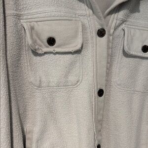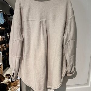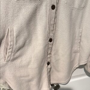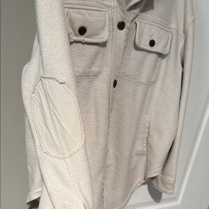 Cozy cream fleece jacket with button-up front and chest pockets. Super comfy and cozy! Can be paired perfect with leggings or jeans! Size xl