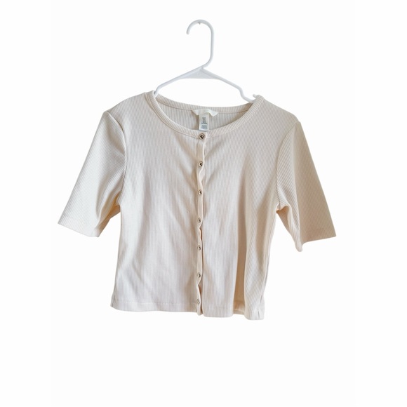 🌻 Cream Button-Up Ribbed Top 🌻 Size: Medium 🌻 Short sleeve cropped 🌻 Stylish cream ribbed top with button-up front 🌻 Perfect for casual wear