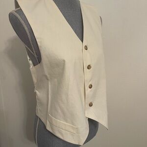 Stylish cream vest with button-up front..Measurements: chest 19", length 18".
