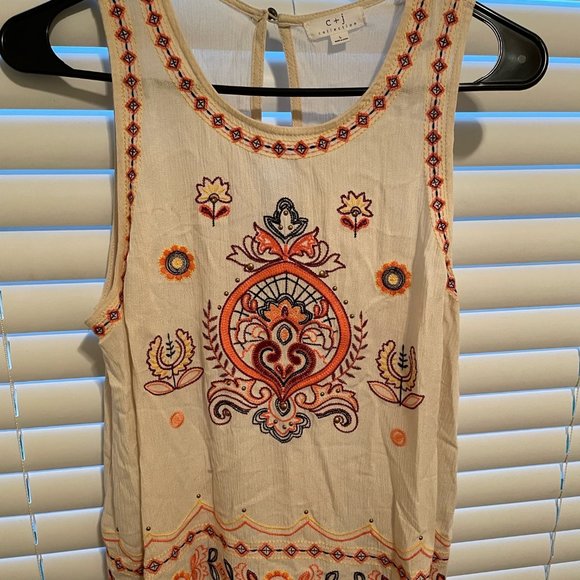 Like New and barely worn! Beautiful Cream C+J Boho Summer Sleeveless Blouse Top. Its a great comfortable top that is perfect to wear in the summer and spring!