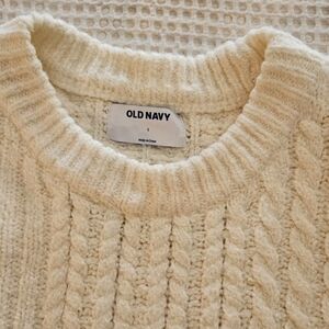 Old Navy cream cable knit sweater. Size Large. Great used condition. Super soft and warm. Zero itch!