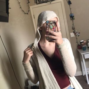 Abercrombie & Fitch tan cardigan WITH pockets & hood