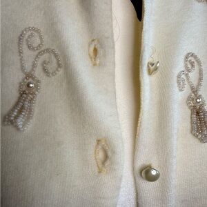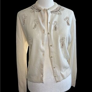 Cream Cardigan with Beaded Embellishments 1960s White Beaded Cardigan