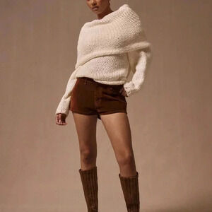 Cream Casual Women's Oversized Foldover Boat Neck Knit Jumper