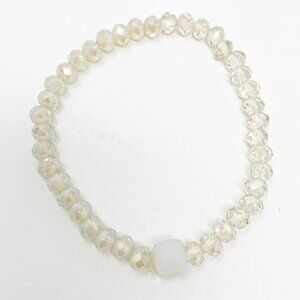 Stretch bracelets, set of 3, shades of cream and champagne beads in matte and iridescent finishes.