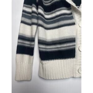 Cream Chunky Cardigan Womens Size Small Striped Sweater Long Sleeve Knit Top