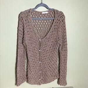 Cream Cloth Women Crochet Sweater With Pearl Button Detail Sz XL EUC Runs Small
