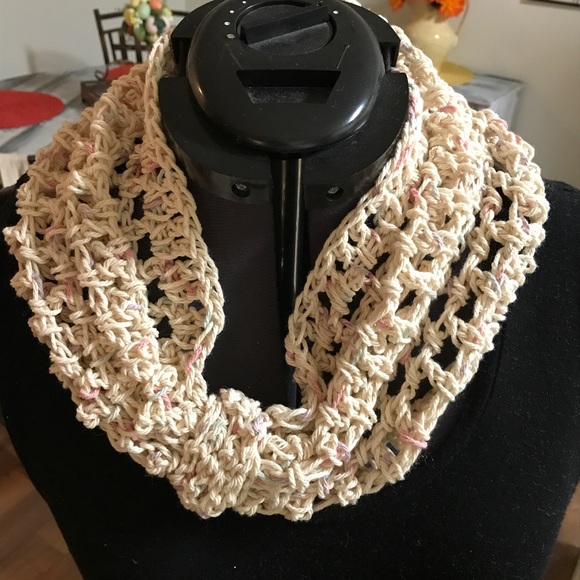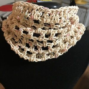 Beautiful crochet scarf . Perfect for the fall , when you need just a little extra warmth . It's stylish and functional. You won't end up wearing the same thing as anyone else , because these are delicately and uniquely crochet .