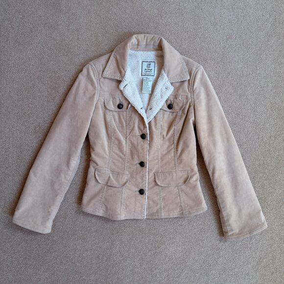 Cream Corduroy Fuzzy Lined Jacket Juniors Medium Womens Small