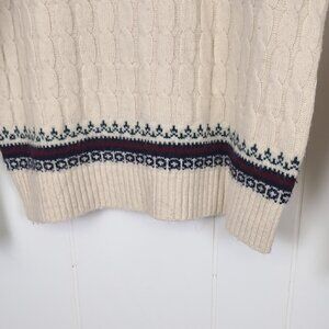 Cream Crewneck Sweater with Nordic Pattern and Cable Knit Design