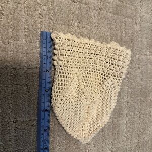 Add a touch of elegance to their outfit with this beautiful cream crochet accessory. Perfect for any occasion. Such a sweet little bonnet. No tags and no imperfections. The photos seem like it is discolored but my lighting is just not great. Let me know if you have any other questions.