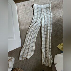 Never worn. Elegant cream crochet cardigan and pant set. Features button-up design and intricate crochet pattern. Can be purchased separate as well!