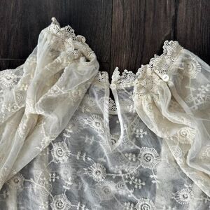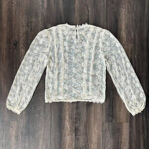 Cream Crochet Lace Long Sleeve Shirt Sheer Micro Mesh Embroidered Size Medium