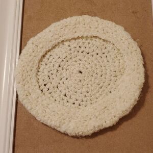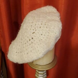 Hand Crafted crocheted cream beret. One size fits most. Excellent pre loved condition, measurements in pics, smoke free home, ships next day. Over 2,500 Poshmark Sales. Bundle and Save!
