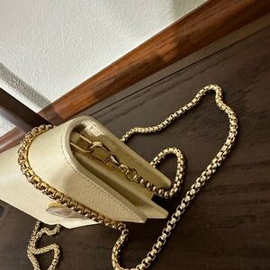 Featuring a sophisticated cream hue and a chic chain strap, this bag is perfect for any occasion.