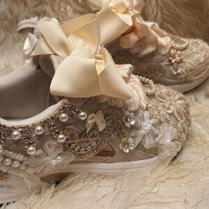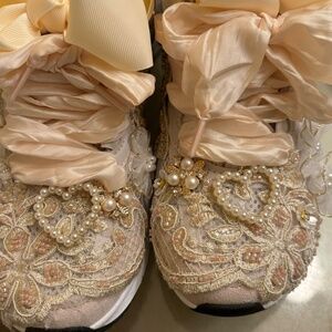 FREESTYLE LACEY CUSTOM SNEAKERS Elevate your style hand made lace sneakers: SNEAKERS INCLUDED WITH PURCHASE !! "Elevate your style with our bespoke lace sneakers, handcrafted with precision and passion. Made from the finest materials, these unique kicks feature intricate lace details, carefully designed to add a touch of elegance to any outfit. With a range of colors and designs to choose from, you can create the perfect pair to match your individuality. Whether you're looking for a statement piece or a subtle accent, our custom lace sneakers are the perfect fusion of fashion and comfort. Stand out from the crowd and make a statement !! EACH PAIR OF SNEAKER WILL BE UNIQUE , ONE OF A KIND ! all sales are final !! please choose correct shoe size. (true to size in women’s ) PLEASE ASK FOR SIZE women’s 6-10.5 available