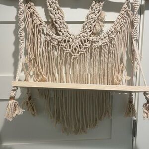 Cream Display Shelf with Intricate Macramé Design