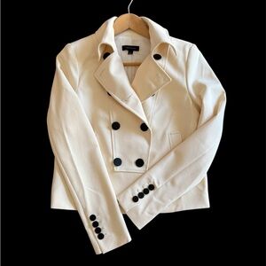 Chic cream pea coat by Ann Taylor. Features stylish black buttons. Ideal for versatile wear.
