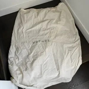 Soft cream drawstring bag with a drawstring closure. 38 x 38