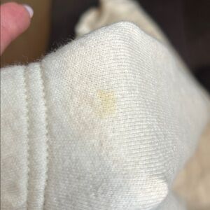 Cozy cream sweatshirt with drawstring details. Perfect for casual wear. Used about 3 times tiny stain on sleeve is pictured on the description ..