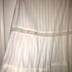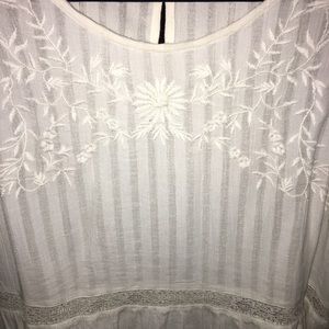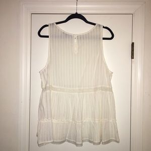 Never worn! Very cute and well fitting tank! Is sheer - the middle lace part is see through, as well. The embroidery is impeccable as well!