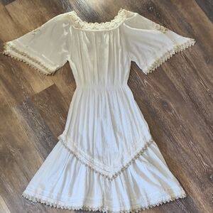 Elegant cream midi dress with delicate floral details. Perfect for any occasion.