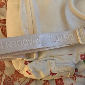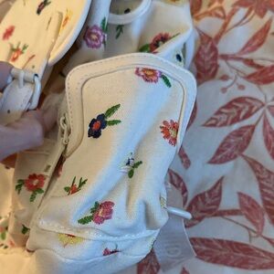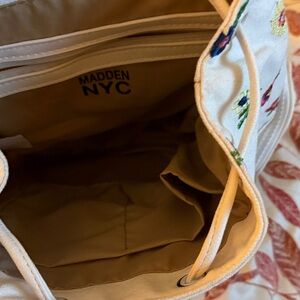 Elevate your style with the cream backpack, adorned with a charming floral pattern. Perfect for any occasion.
