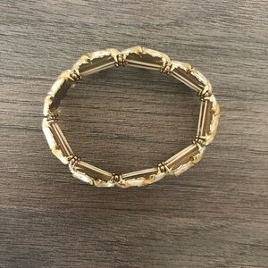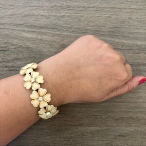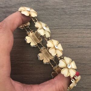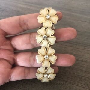 Beautiful gold toned with cream colored flowers and rhinestone accents