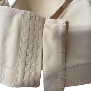 This cream bra offers full coverage and support with its underwire design and wide band. The smooth, slightly shiny fabric ensures a comfortable fit, while the adjustable straps provide a customizable experience. Molded cups with a slight contour enhance shape and silhouette.