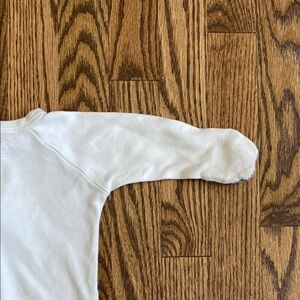Cream Goumi viscose made from bamboo and organic cotton sleep and play footie, size 3-6 months. Good condition, some wash wear and several stains (shown in pictures). Ships quickly from smoke free/pet friendly home.