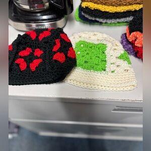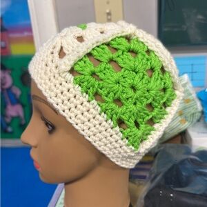 Elegant cream crochet beanie hat with green accents. Perfect for adding a touch of style. Many colors are available. These are made to order.