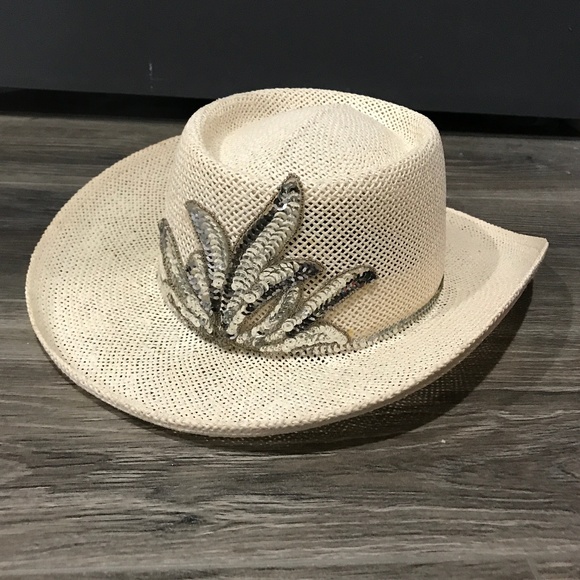 Weaved Hat with Silver Sequins. *MAKEUP STAIN ON RIM IN THE INSIDE*