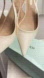 These heels feature a sleek cream color and a classic slingback design, offering a perfect blend of style and comfort. The pointed toe and minimalist aesthetic make them versatile for both casual and formal occasions. Crafted with a textured surface, these heels are a chic addition to any wardrobe.