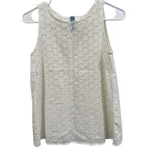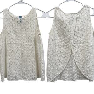 Cream Ivory Eyelet Lace Open Back Sleeveless Top- Small