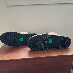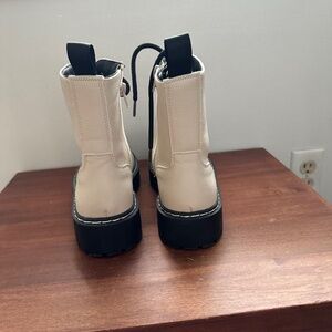 Super cute ivory toned combat boots by Sincerly Jules. Black soles and laces. Women’s size 8. From a pet free smoke free home.