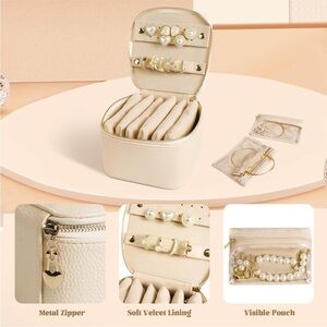 Elegant cream jewelry travel case with multiple compartments. Perfect for organizing your accessories on the go.