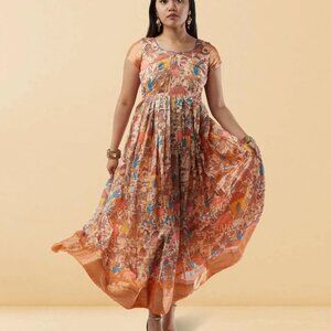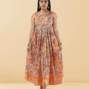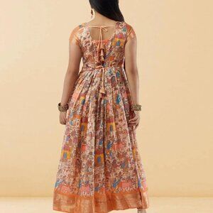 Select a cream Kalankari print ankle-length dress that blends tradition with modernity. Perfect for special occasions, this elegant piece enhances your style.
