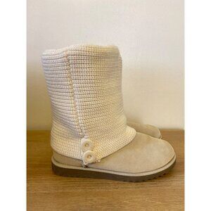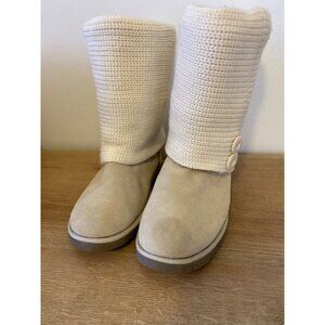 Cream Knit Boots With Faux Suede Fur Lined With Button Detail Size 9