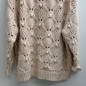 Stay warm and stylish with this cozy cream knit sweater. Perfect for layering, this sweater offers both comfort and elegance.