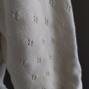 Vintage white cotton/nylon Knit blend (70%/30%) with square neck and cinched waist. Cutout patterns on the sleeves and waistline. In great condition, no major flaws.