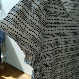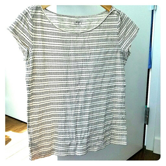 Sophisticated cream and black tee from the LOFT. Cap sleeves. Detail on one shoulder with three small buttons. Size small. No defects. Pet-free smoke-free home. NO TRADES.
