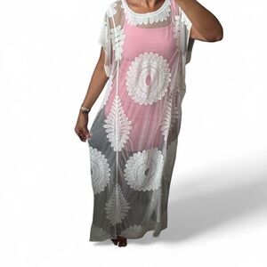 This cream lace coverup adds an elegant layer to your swimwear, perfect for a day at the beach. Its delicate design ensures a stylish and comfortable fit, making it an essential addition to your summer wardrobe.