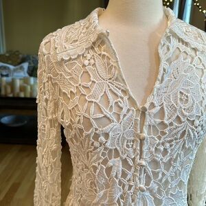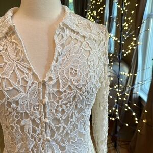 Cream Lace Blouse Bell Sleeve Medium