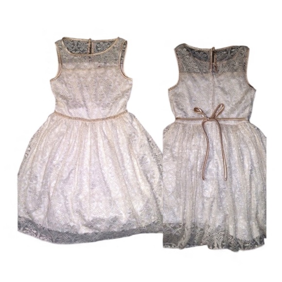 Cream Lace Dress w/Decorative Pearl Waist Sz 8