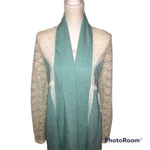 Cream Lace & Mint Green Jacket Medium Open Front Cardigan Jacket Spring