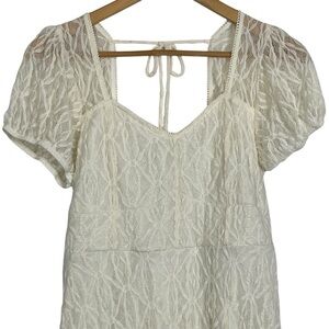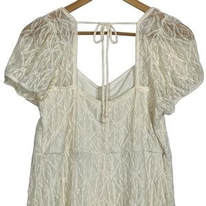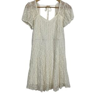 Cream Lace Puff Sleeve Mini Dress Juniors XL 15–17 Romantic Boho Style