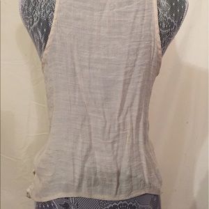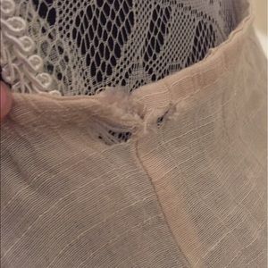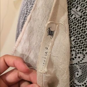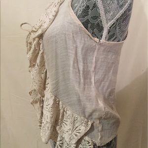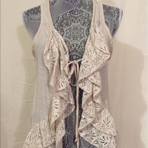 Cream lace ruffle vest by Mine. Has some rips in the armpits on each side, not very noticeable as seen in photos, haven't tried to repair. No stains or other rips. 65% Cotton, 35% rayon. Anthropologie for views. •Sorry, no trades•