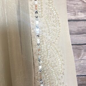 Perfect to spice up a tank or cami, pair it with jeans to add some fun and flirty to your date night! God Gris vest with sequin and lace details, hangs down in front, button to close sheer part if needed. Shorter in back with adjustable belt. Size Large, fits sizes 8-12 best. Excellent condition!